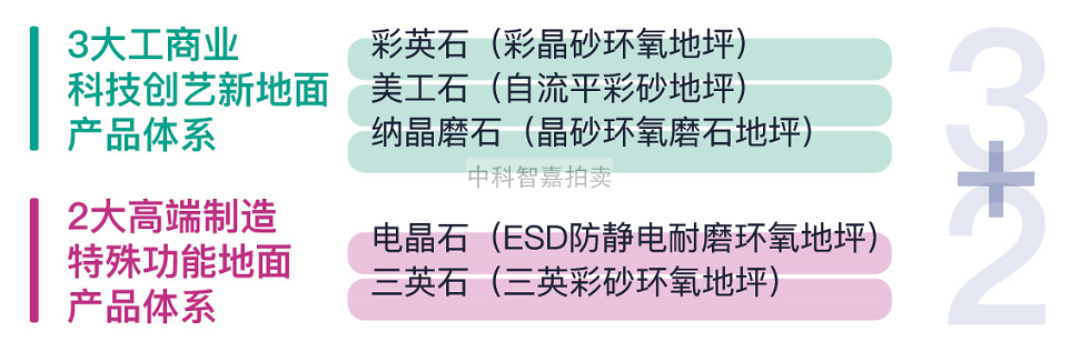 “宝莲纳”彩晶石坪产品体系其中包含三大工商业应用体系(彩英石、美工石、纳晶磨石)和两大高端制造业体系(三英石、电晶石),如图 :