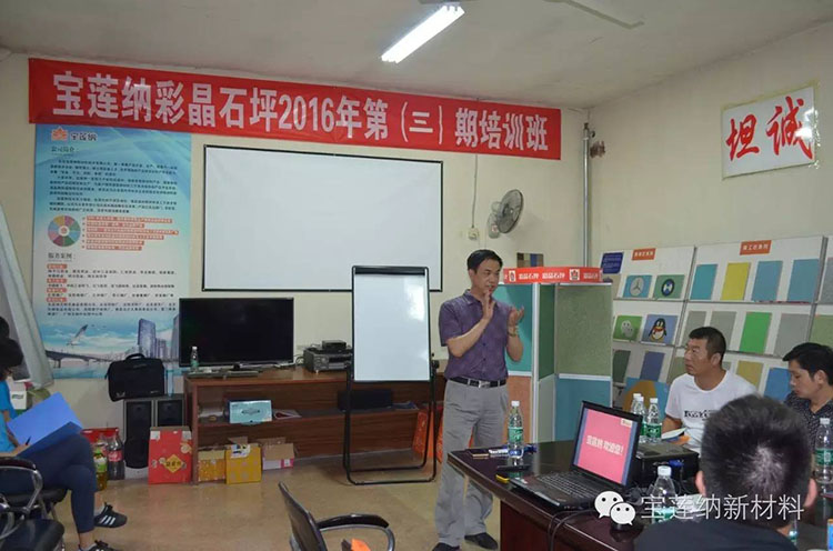 7月16日,我们成功举办了“宝莲纳彩晶石坪第二期基础培训”,会后大家反响强烈,很多因时间排不开,未能亲临现场的朋友纷纷要求尽快举办新一期的课程,为满足大家的学习热情、让更多的朋友了解我们的产品及其性能,8月13日,北京宝莲纳新材料技术有限公司“彩晶石坪2016年第三期培训班”如期举行了!
