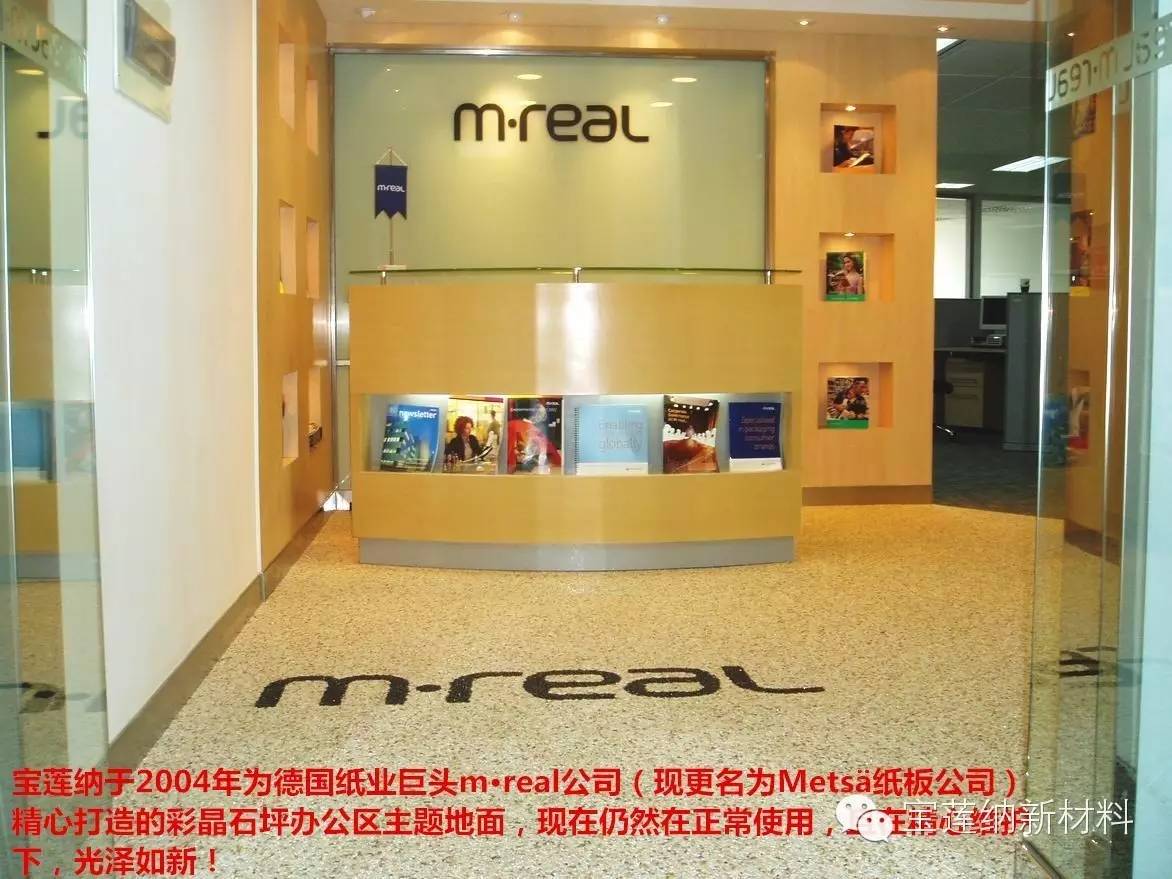 1)商务办公领域人群密集、往来频繁、地面使用频度高,所以地面产品一定要高强度、耐磨、抗压、防划伤。宝莲纳彩晶石坪其骨料是二氧化硅含量很高的硅晶材料,具有高强度、高耐磨、高抗压的典型特征。