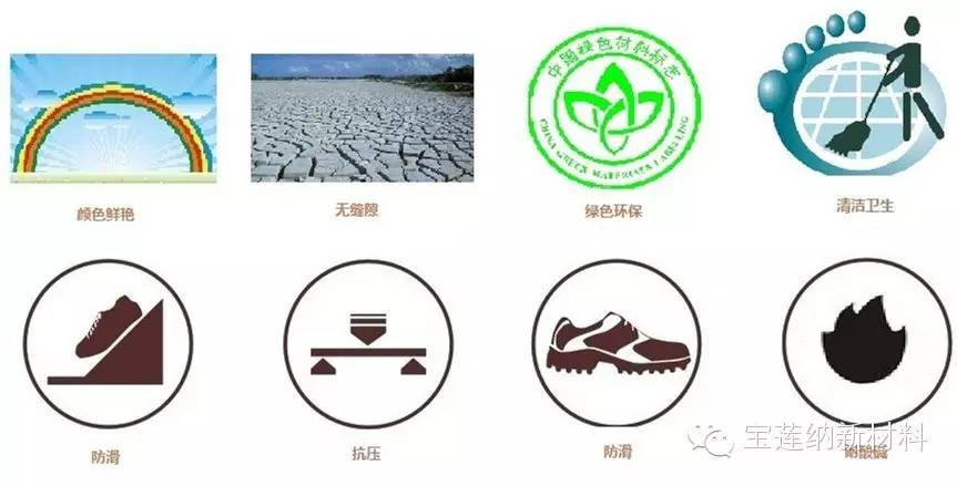 宝莲纳彩晶石坪是以彩晶砂、或各种晶砂颗粒为核心骨料,与无溶剂、绿色环保型环氧树脂复合形成的地面产品系统。其典型特征是整体洁净,无缝一体,地面墙面浑然天成。由于它的骨料系统主要成分为硅晶材料,二氧化硅含量很高,因此具有优异的耐磨损、防划伤、抗压、抗冲击等使用性能。简言之,宝莲纳彩晶石坪是具有“无缝、无尘、无菌”;“防滑、防水、防静电”;“高强度、高耐磨、高抗压、高洁净”(三无、三防、四高)等优异特性的新型人造无缝石材地面产品。